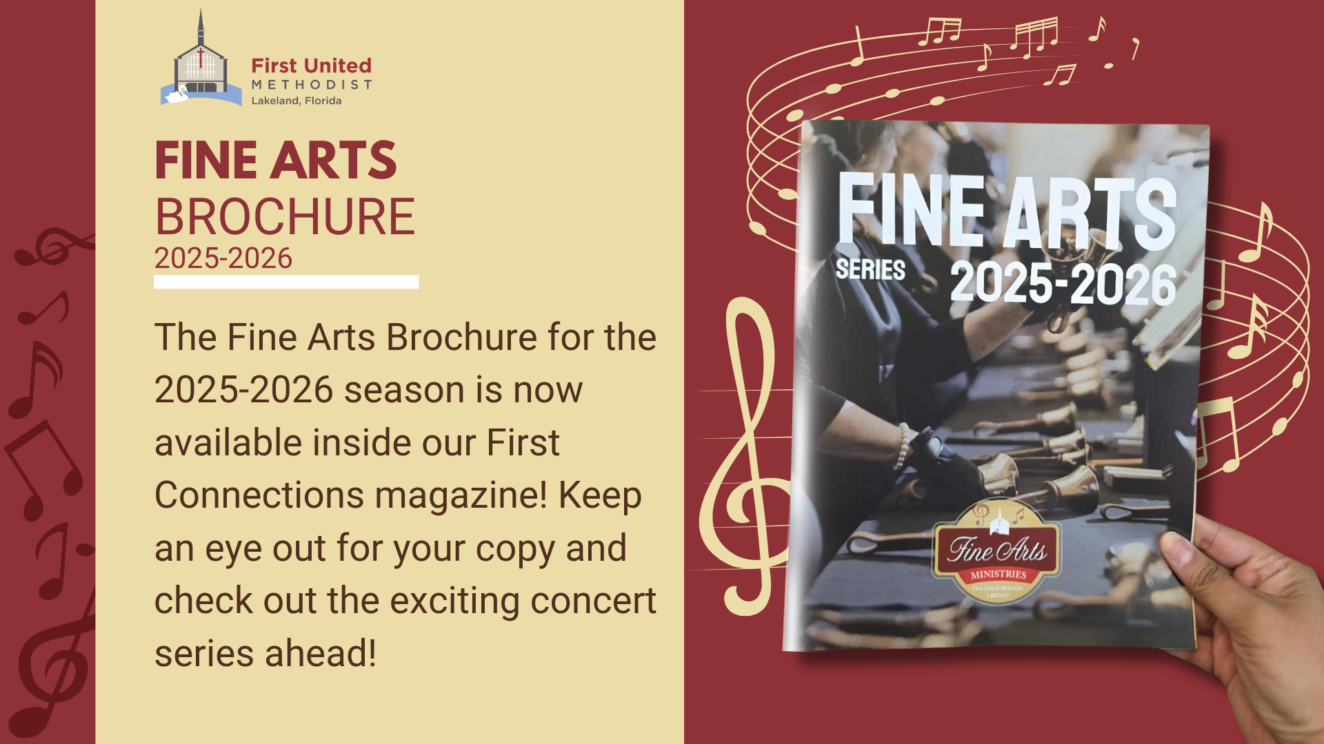 Check out our Fine Arts Series brochure now to stay updated on upcoming events and concerts at First UMC Lakeland!